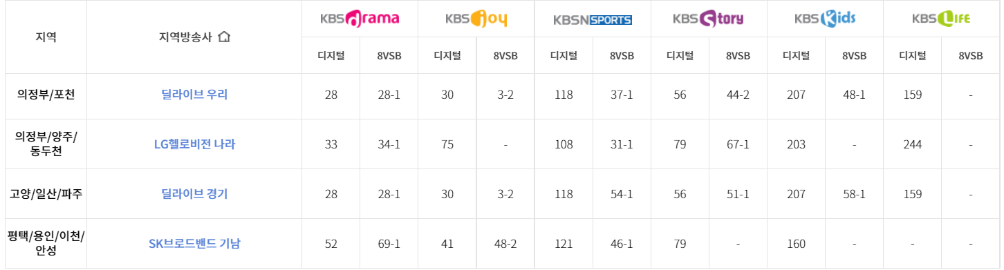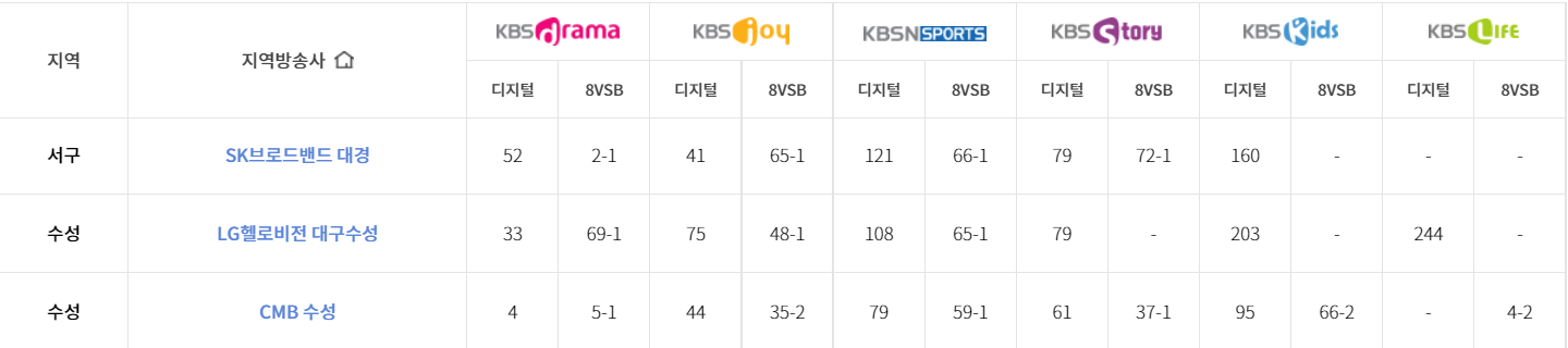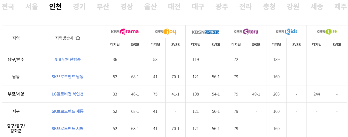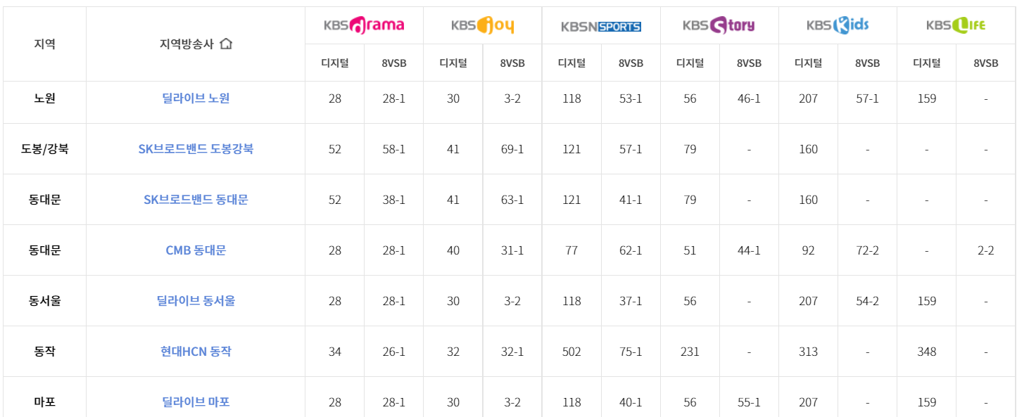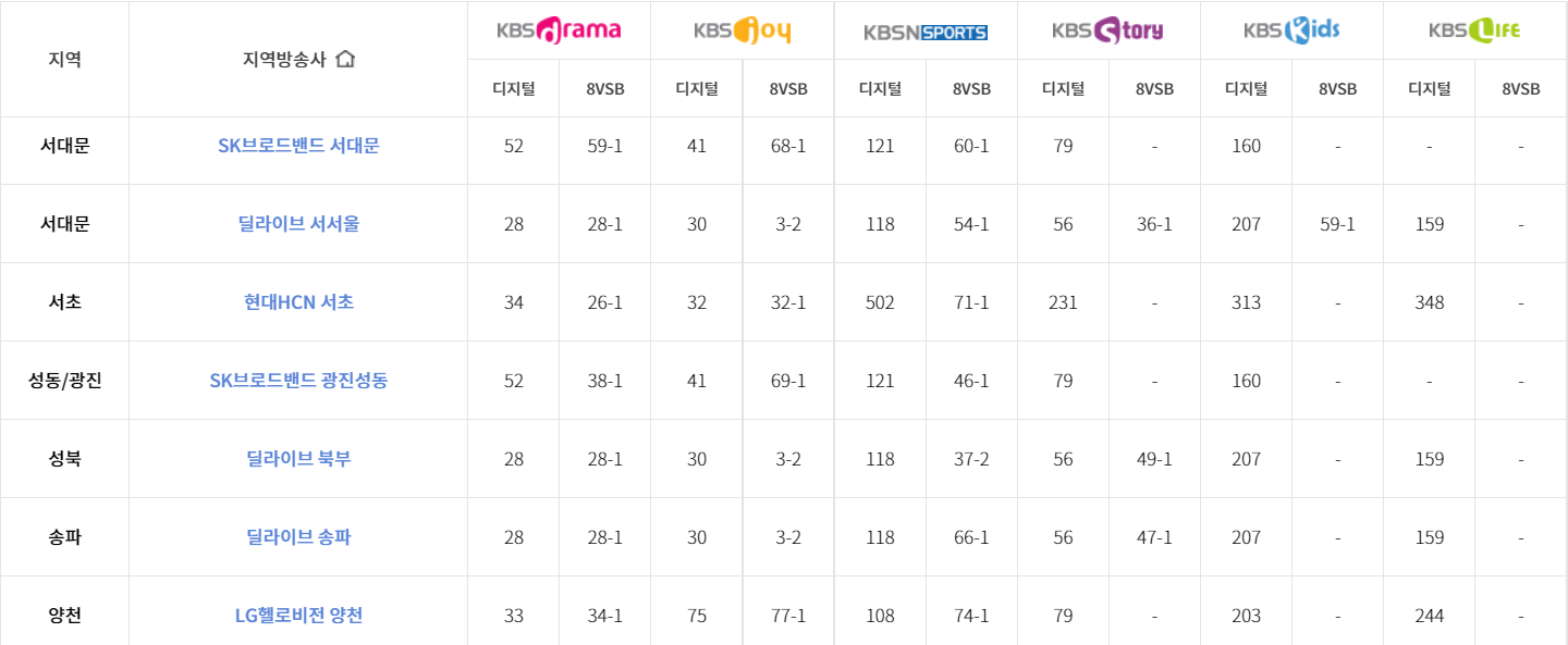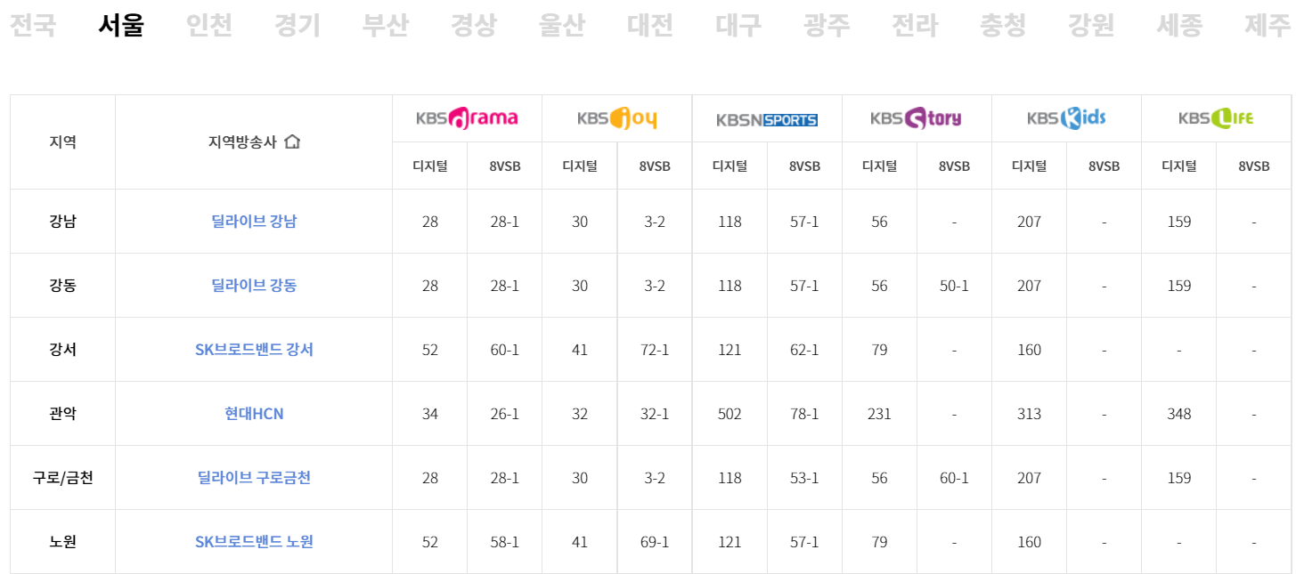 먼저 지역별로 알아볼텐데, 서울 지역 kbs n sports 번호입니다.
