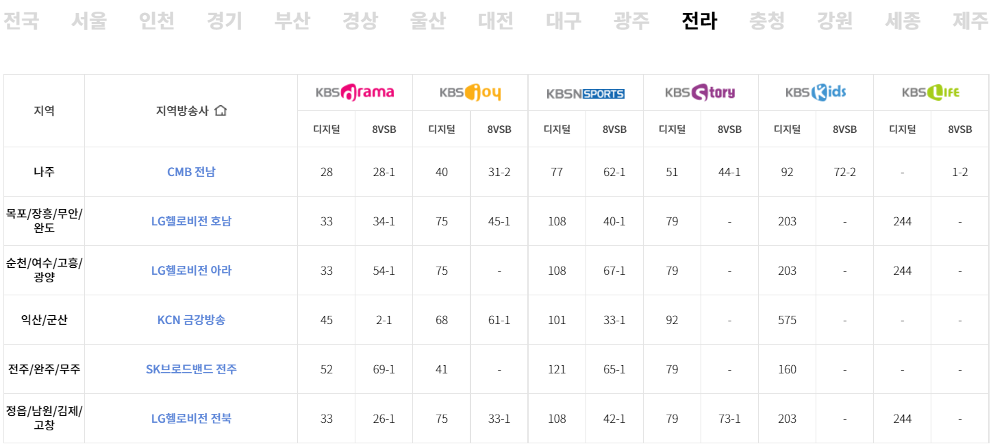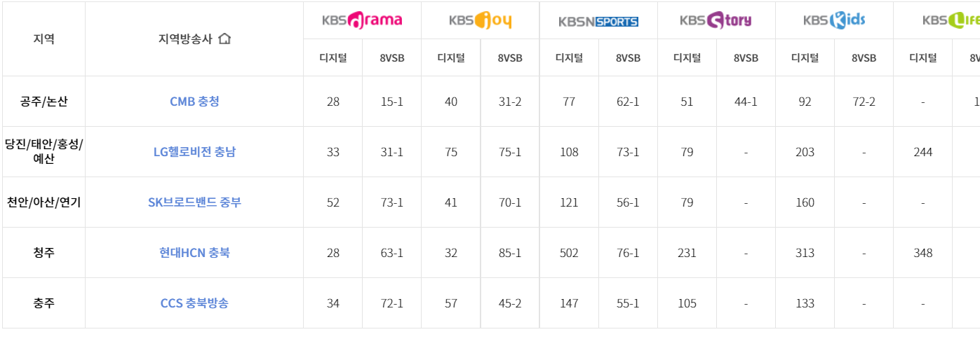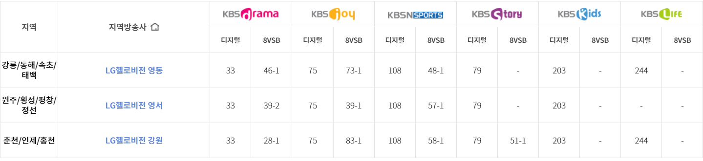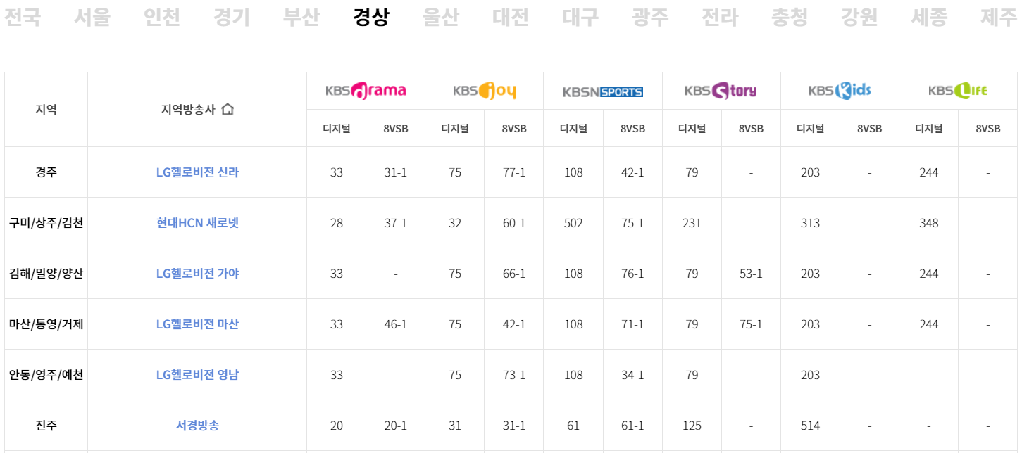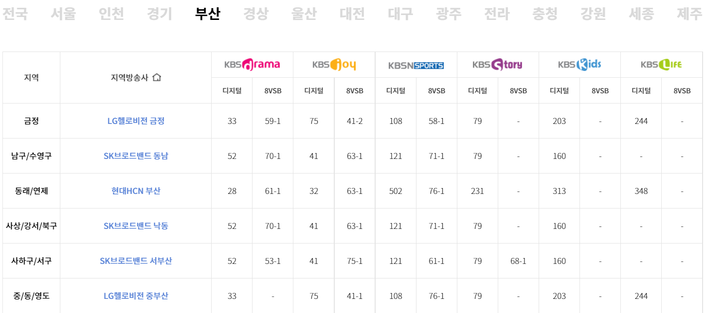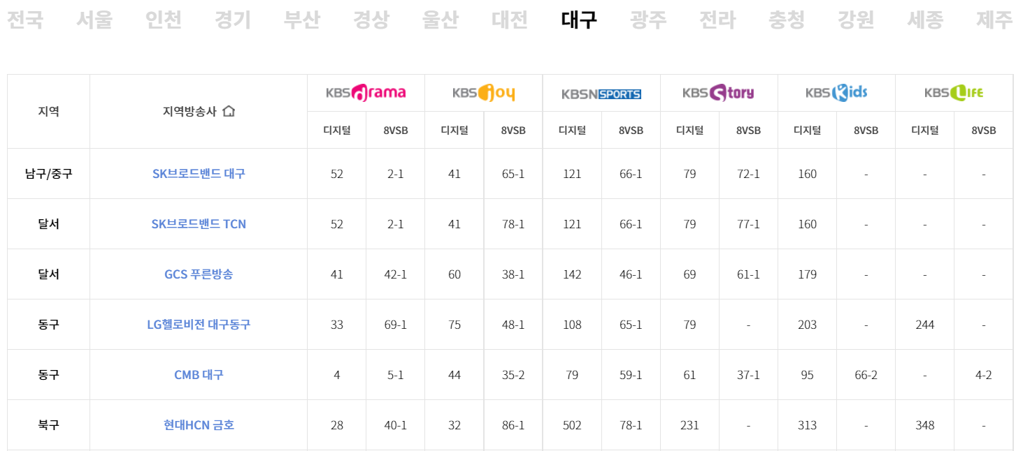 먼저 지역별로 알아볼텐데, 서울 지역 kbs n sports 번호입니다.