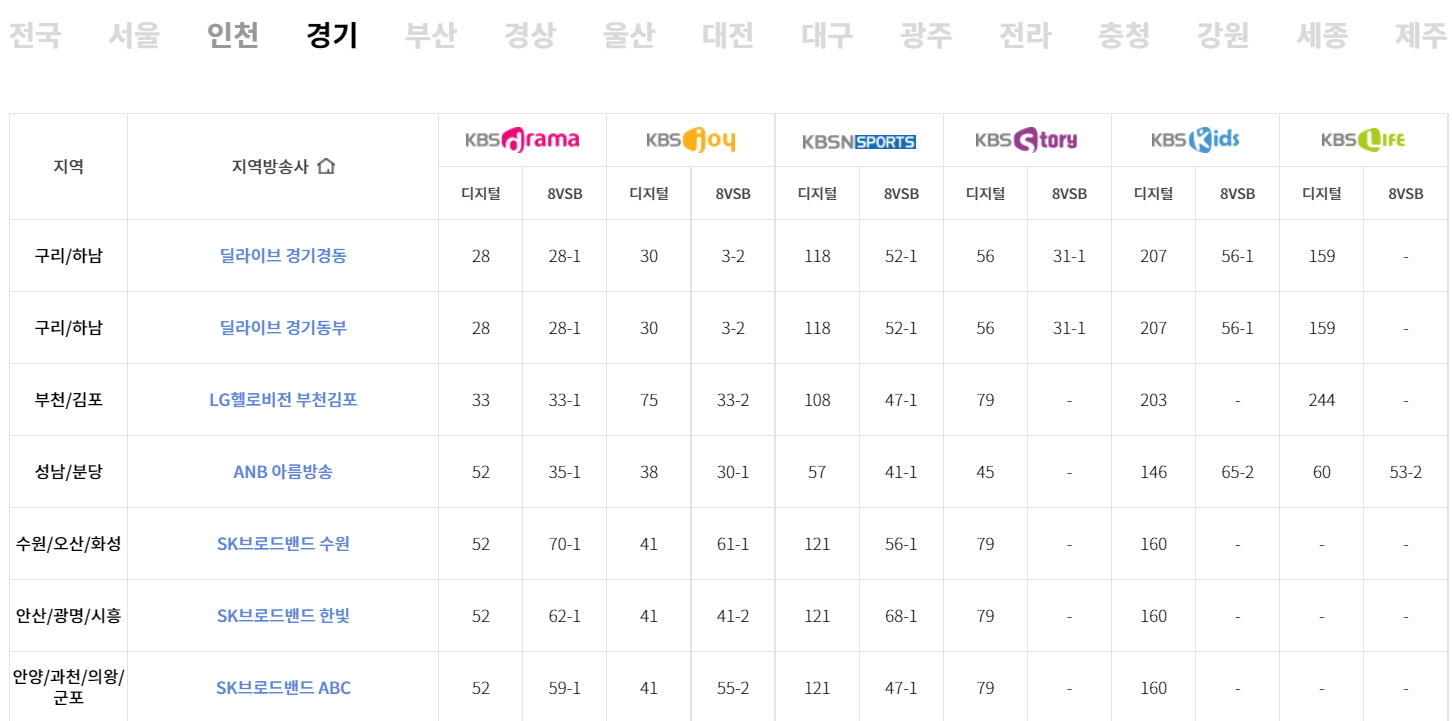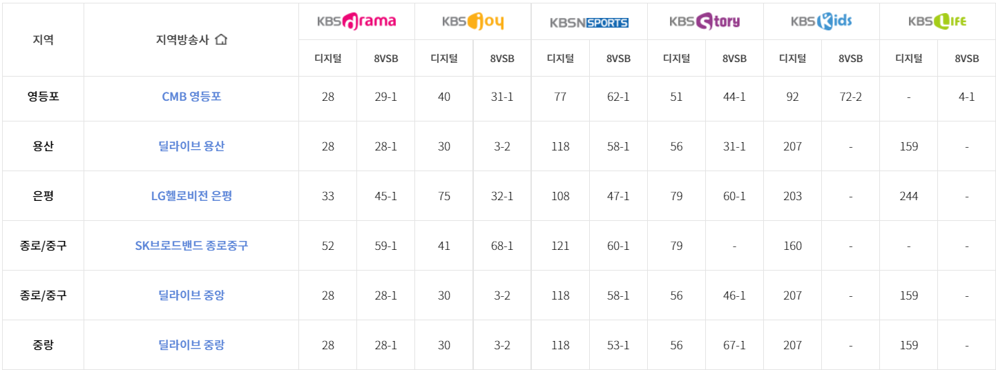 먼저 지역별로 알아볼텐데, 서울 지역 kbs n sports 번호입니다.