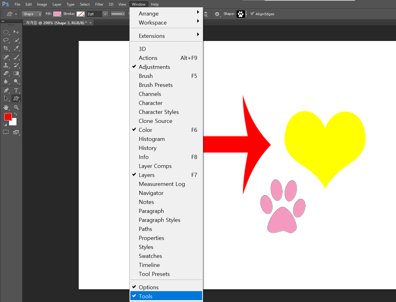 포토샵에서 도구창이 사라졌을때 해결할 수있는 또다른 방법은!!