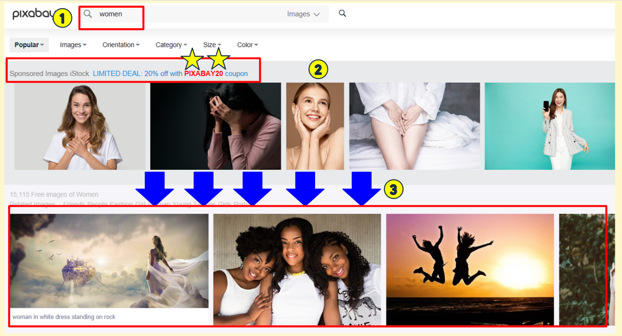 예를 들어, 여자 사진이 필요하시다고 하시면, <여자> 입력 또는 입력하시고 검색하시면 됩니다.