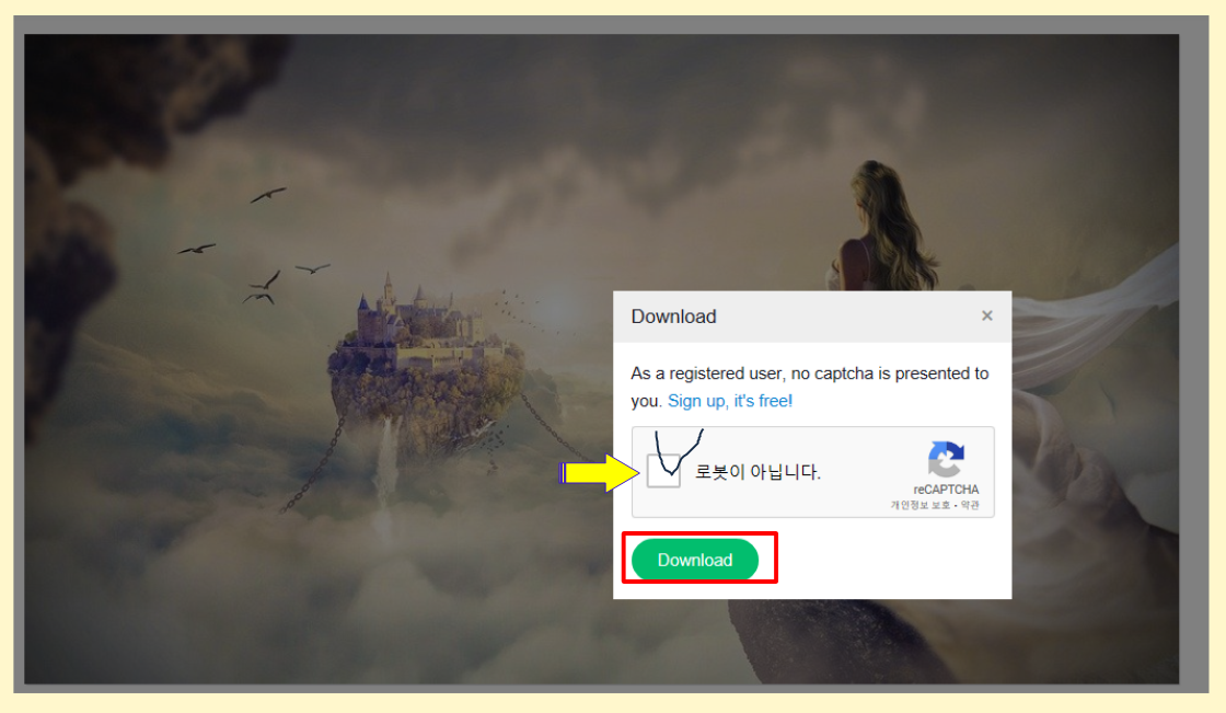 로봇이 아닙니다를 체크해 주시고 다운로드를 눌러주시면 됩니다.