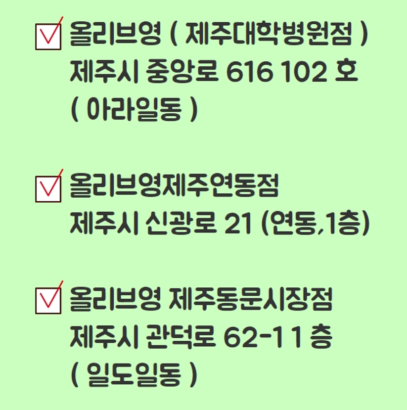 오늘은 제주도에 있는 올리브영중 재난지원금 사용 가능한 매장을 알아봤는데요, 6군데로 좁혀졌습니다. 오늘도 읽어주셔서 너무 감사합니다.