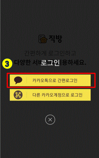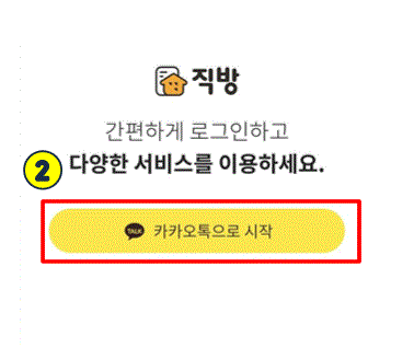 2. 어플을 눌러주시면 로그인 하라고 뜨는데, 빨간박스처럼 카카오톡으로 시작을 눌러주시면됩니다.