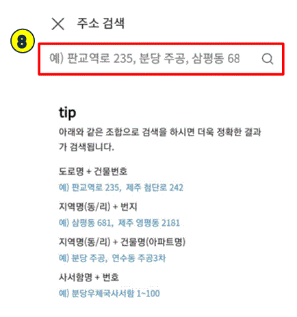 위에 있는 8번은 본인이 살고있는 집주소를 입력하시면 됩니다.