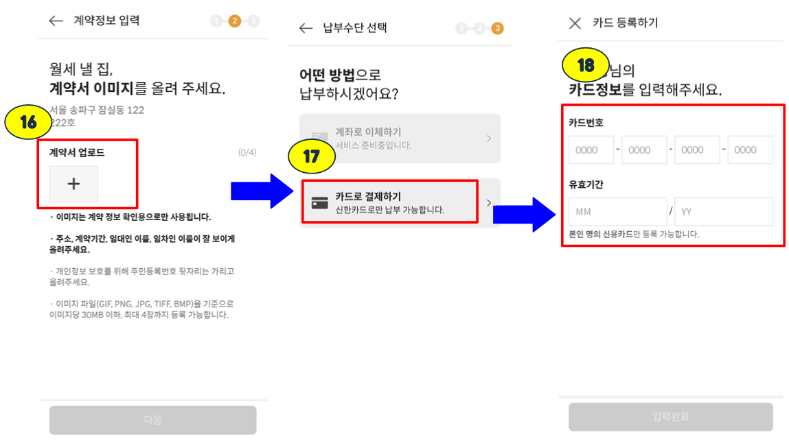 직방에서 신한카드로 신청하는 방법