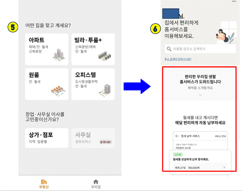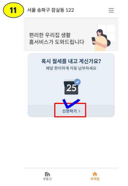 5번처럼 화면이 보이실텐데, 아래에 우리집을 눌러주세요.