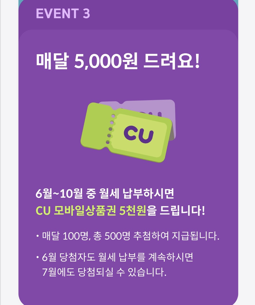 3. 추첨을 통해서 총 500명에게 CU 편의점 5000원권 기프티콘을 증정