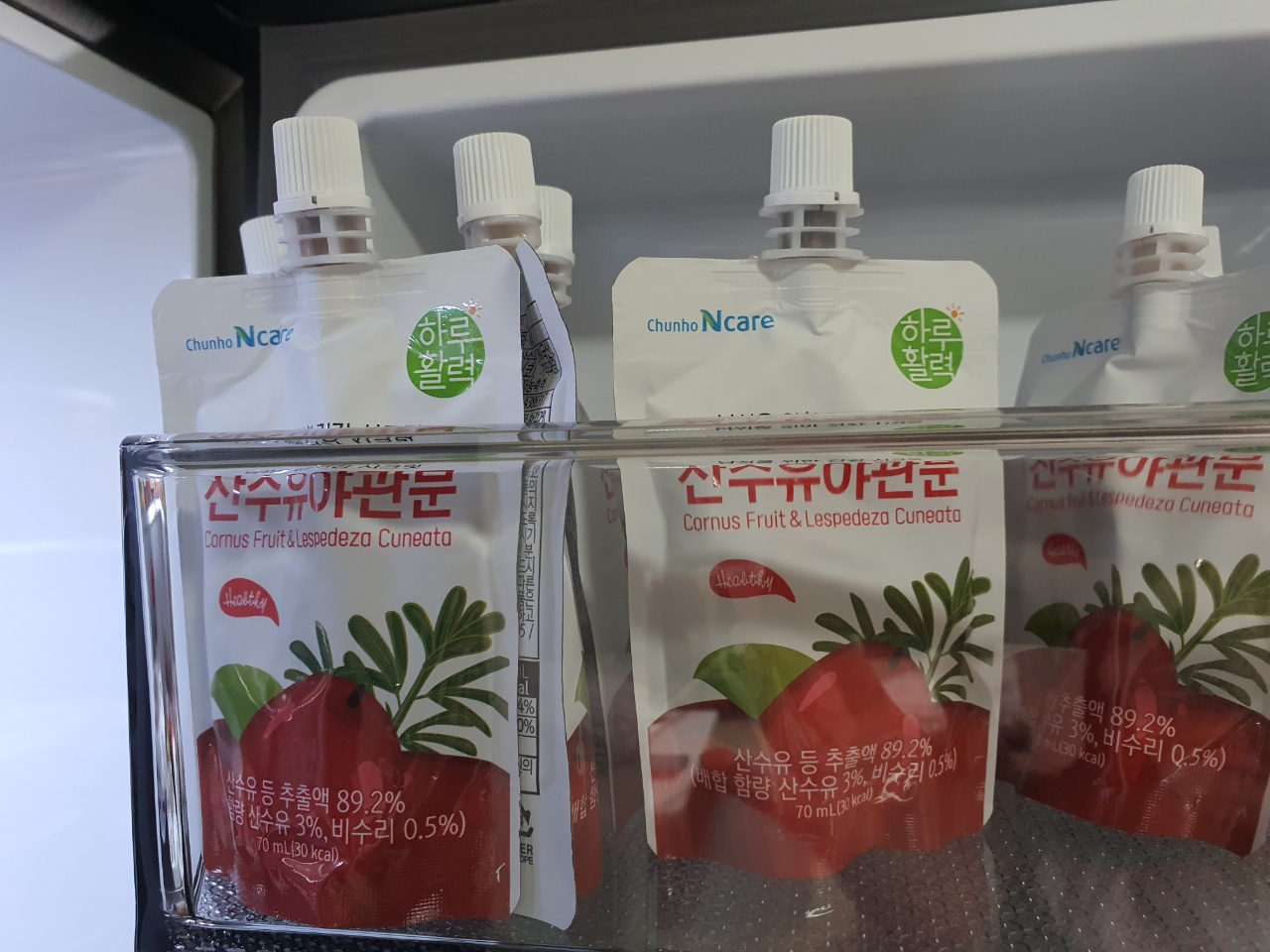 오른쪽 상단에는 산수유즙을 내버려두었는데요, 저희 아빠가 산수유 야관문즙을 먹으라고 해서 한 박스를 주셨는데요, 다른 것보다 맛있더라고요! 제가 산수유를 먹는 이유는 아무래도 신장이 조금 안 좋긴 한데요, 새콤하고 달콤하진 않지만 야관문즙향이 살짝 날정도라서 먹기도 편해서 한 개 두 개 먹다 보니 금방 먹게 되네요.