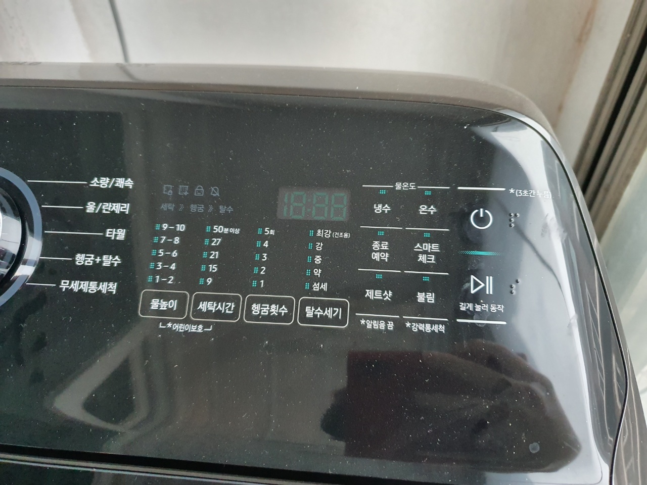 제가 선택한 세탁기의 번호는 WA19A8370KV 이구요, 무게는 19kg입니다. 소형 세탁기에 비하면 굉장히 크게 느껴지실 거예요! 하지만 가정집에 식구가 많거나 빨래가 많이 나오는 집이라면 너무 사용하기 좋은 삼성 그랑데 통돌이 세탁기입니다.