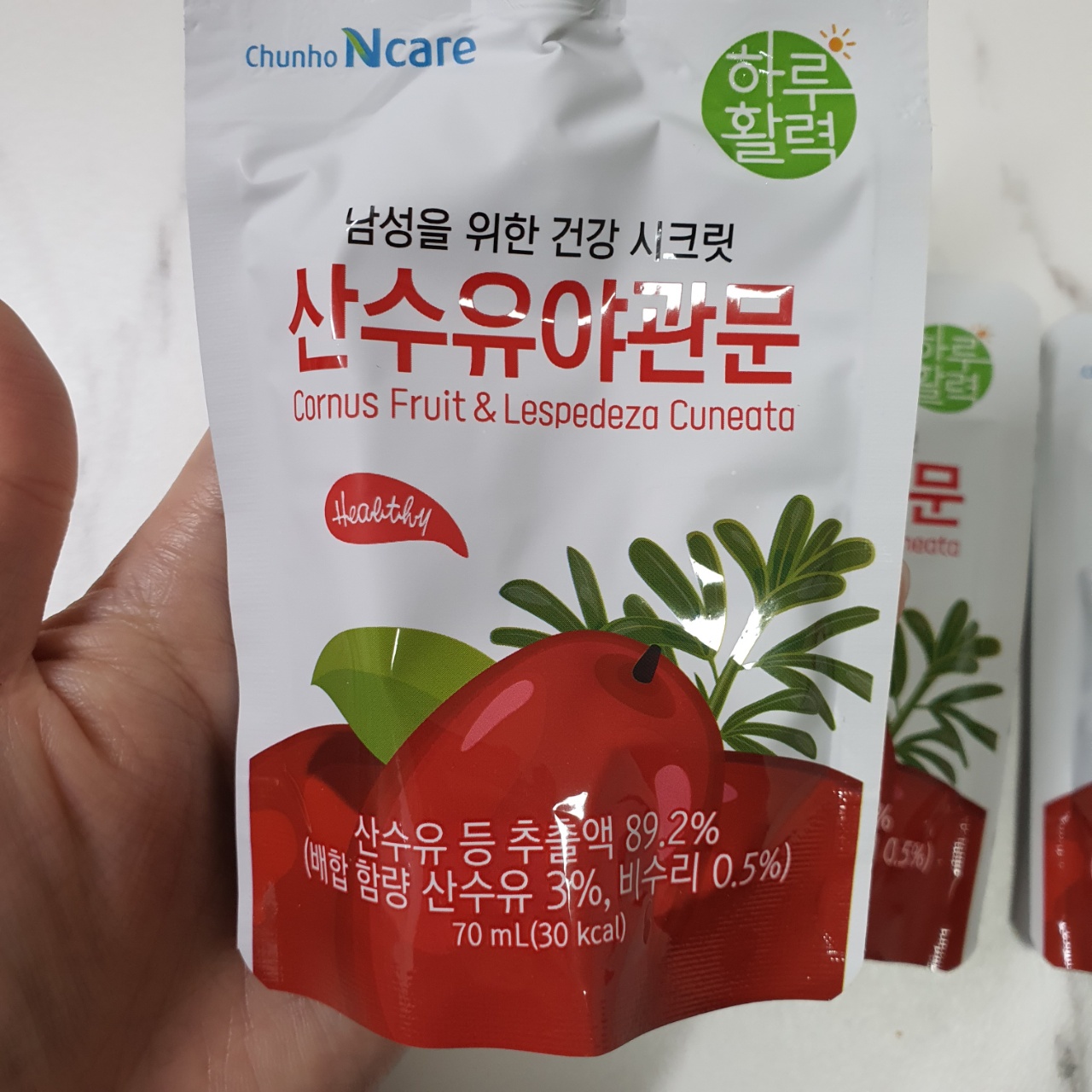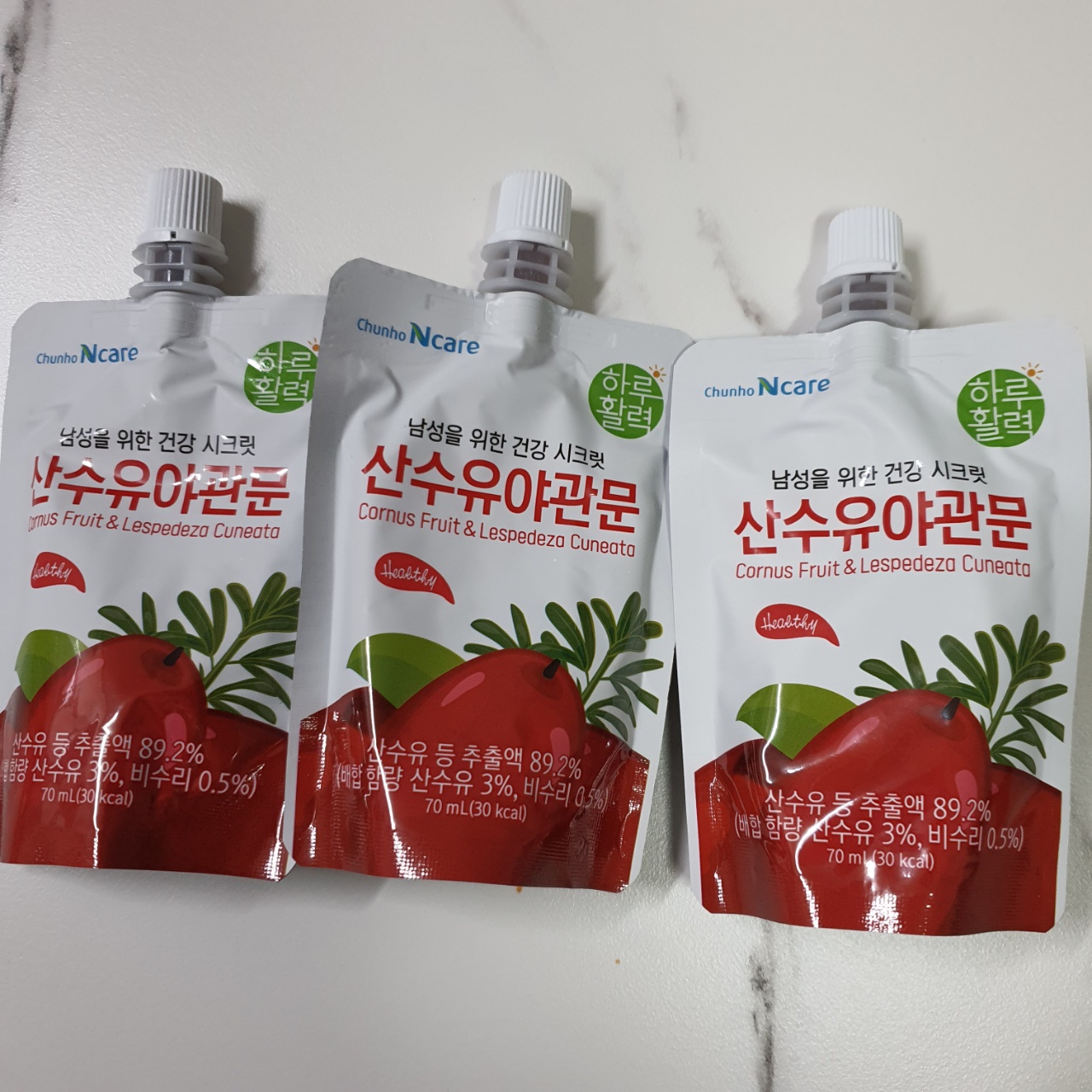 오늘은 산수유 효능에 대해서 알아볼 텐데요, 제가 산수유를 먹는 이유는 콩팥이 너무 안 좋기 때문이에요. 그래서 아버지께서 선물로 주셨던 산수유 야관문즙입니다.