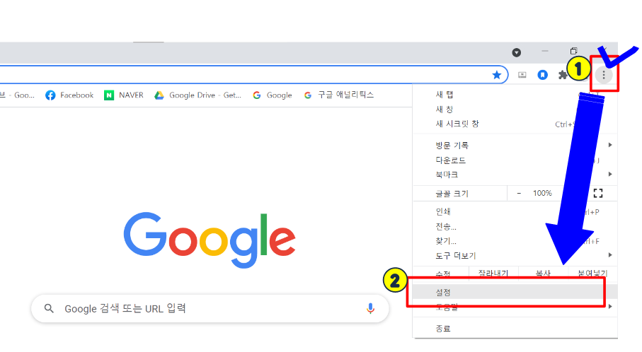 구글 크롬 북마크바(즐겨찾기바) 표시가 되어있는 것을 없애려고 할 때는, 저기 파란색 화살표 표시를 눌러서 비활성화를 해주시면 됩니다. 저는 가끔 비활성화를 해놓기도 하는데요, 노트북이 작아서 큰 화면을 보고 싶을 때 사용하기도 합니다.