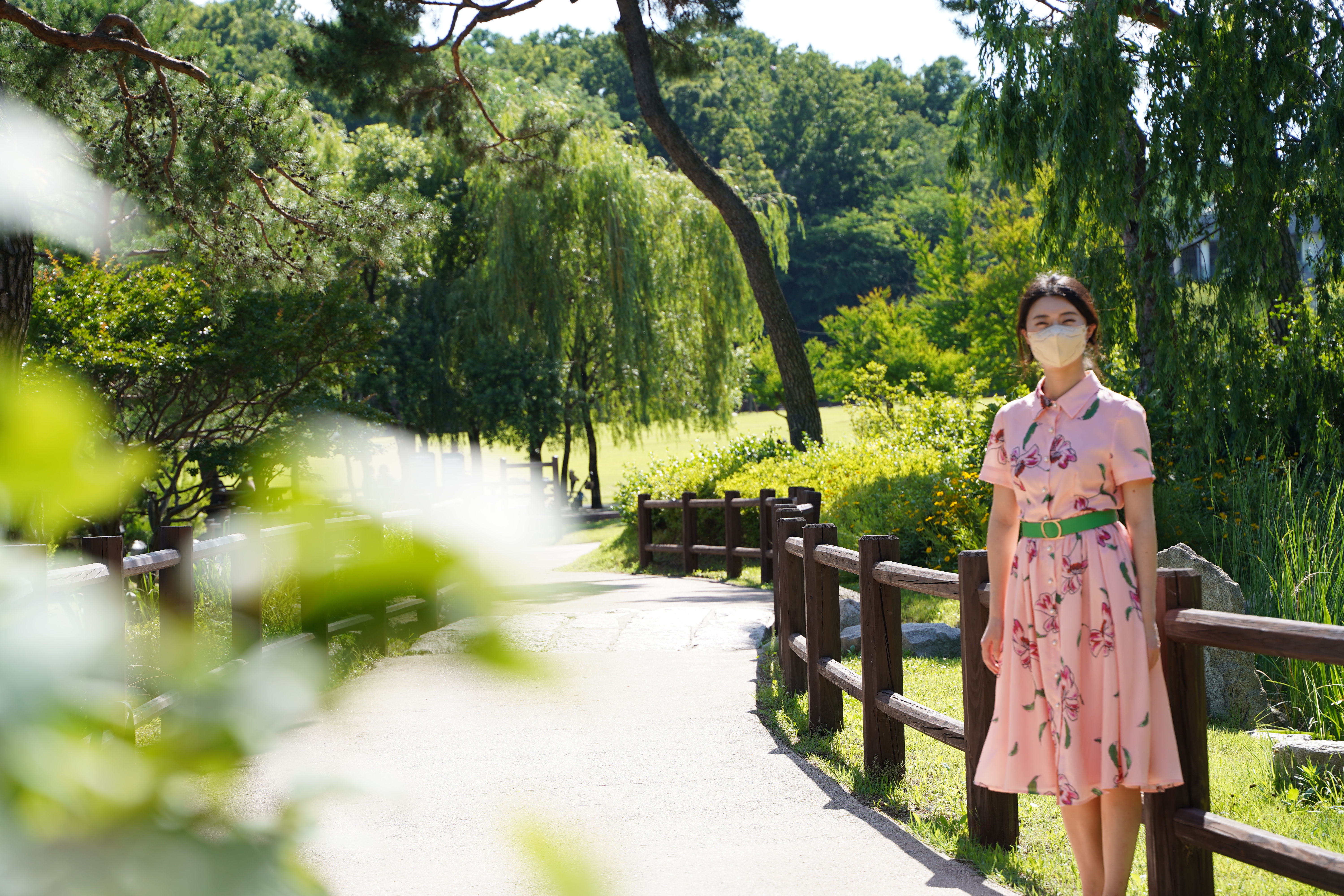 하체를 가리고 싶으시거나, 바람이 많이 부는 곳을 가실 경우 롱 원피스를 많이들 입으시는데요, 대부분 색상이 원톤인데 유니크한 색상이라서 너무 좋은 것 같아요. 빅 플라워 패턴이 들어간 원피스는 요즘에 보기 힘든데 이렇게 입어보니 유니크하고 고급스러워서 자주 입게 됩니다.