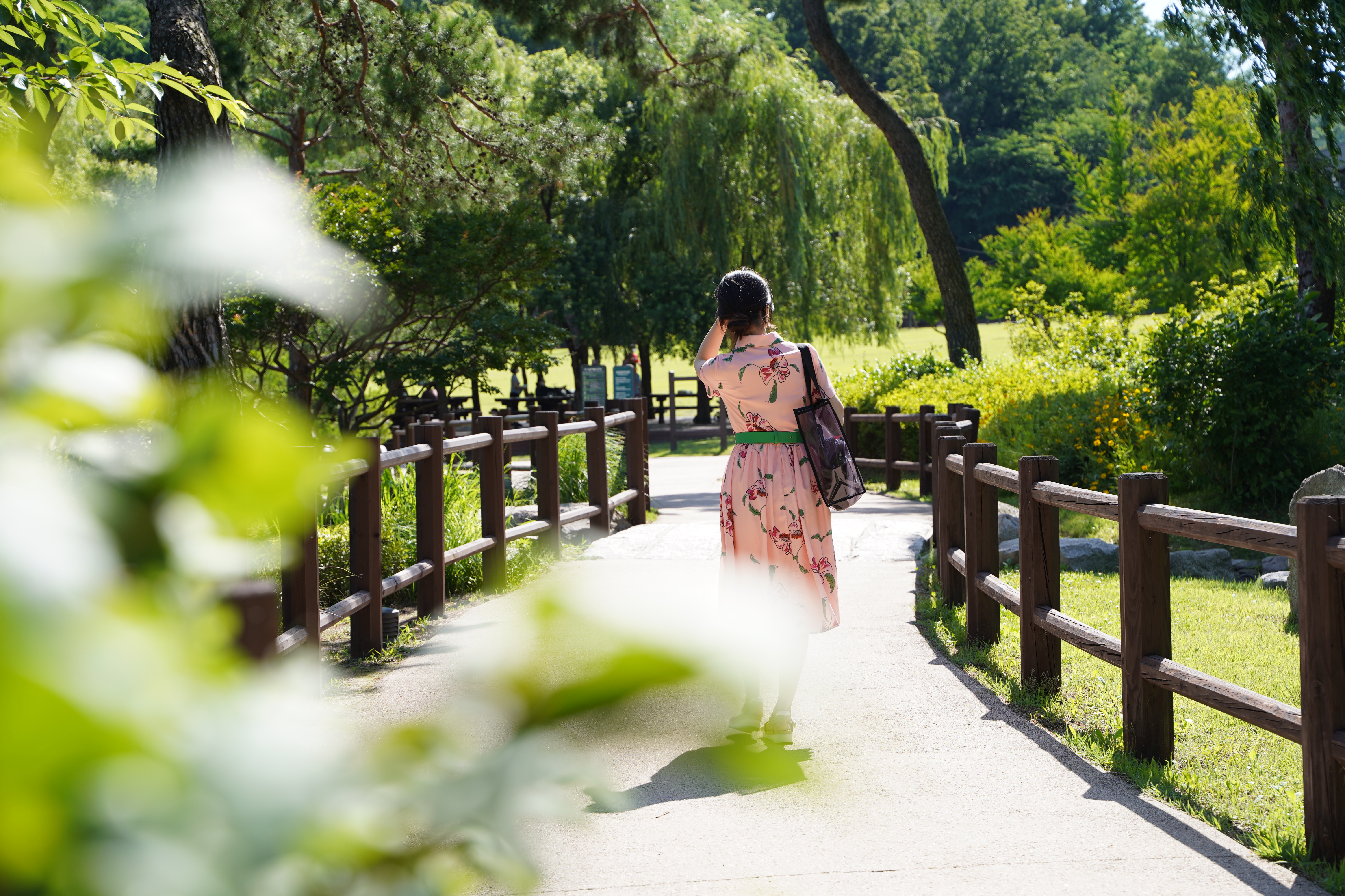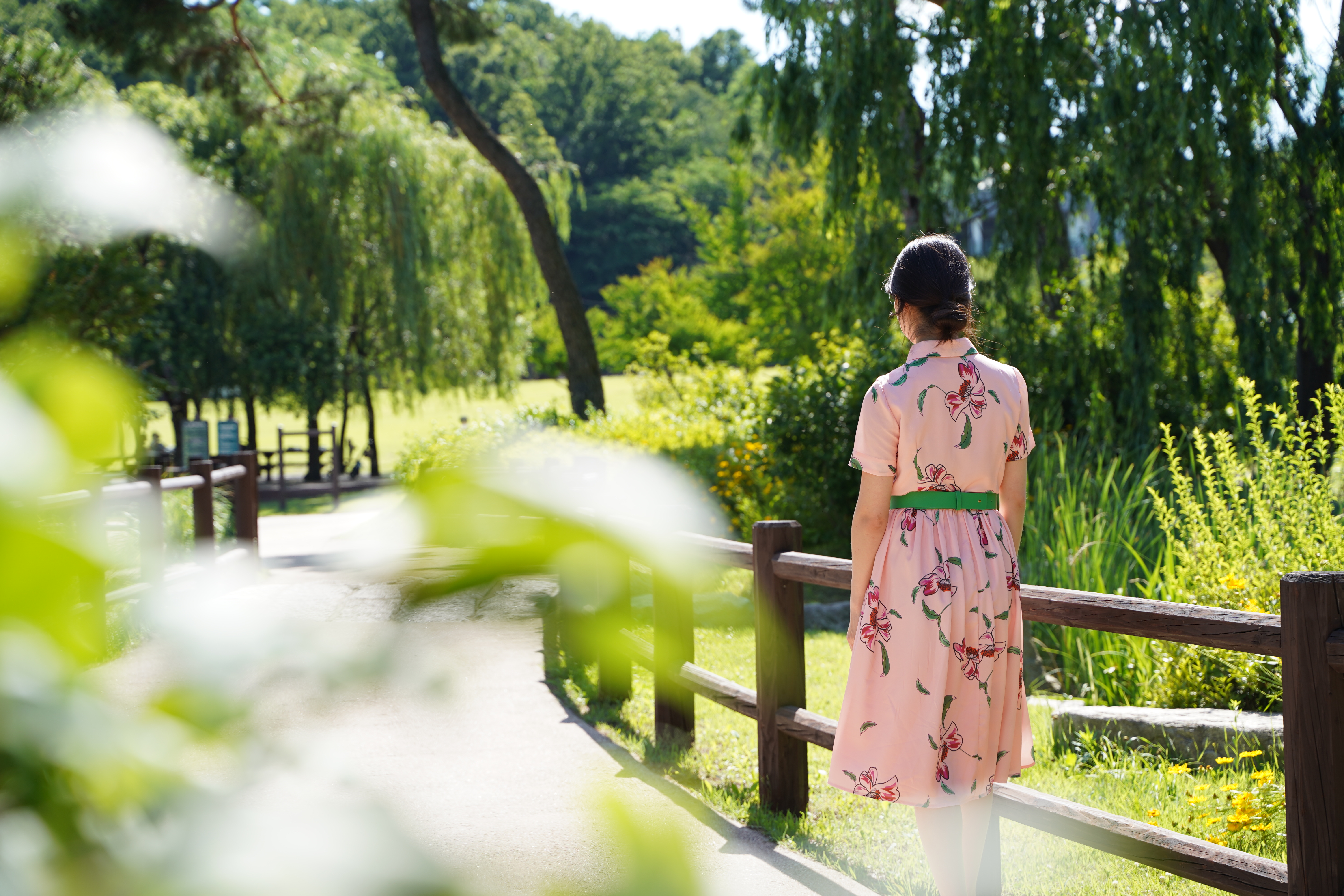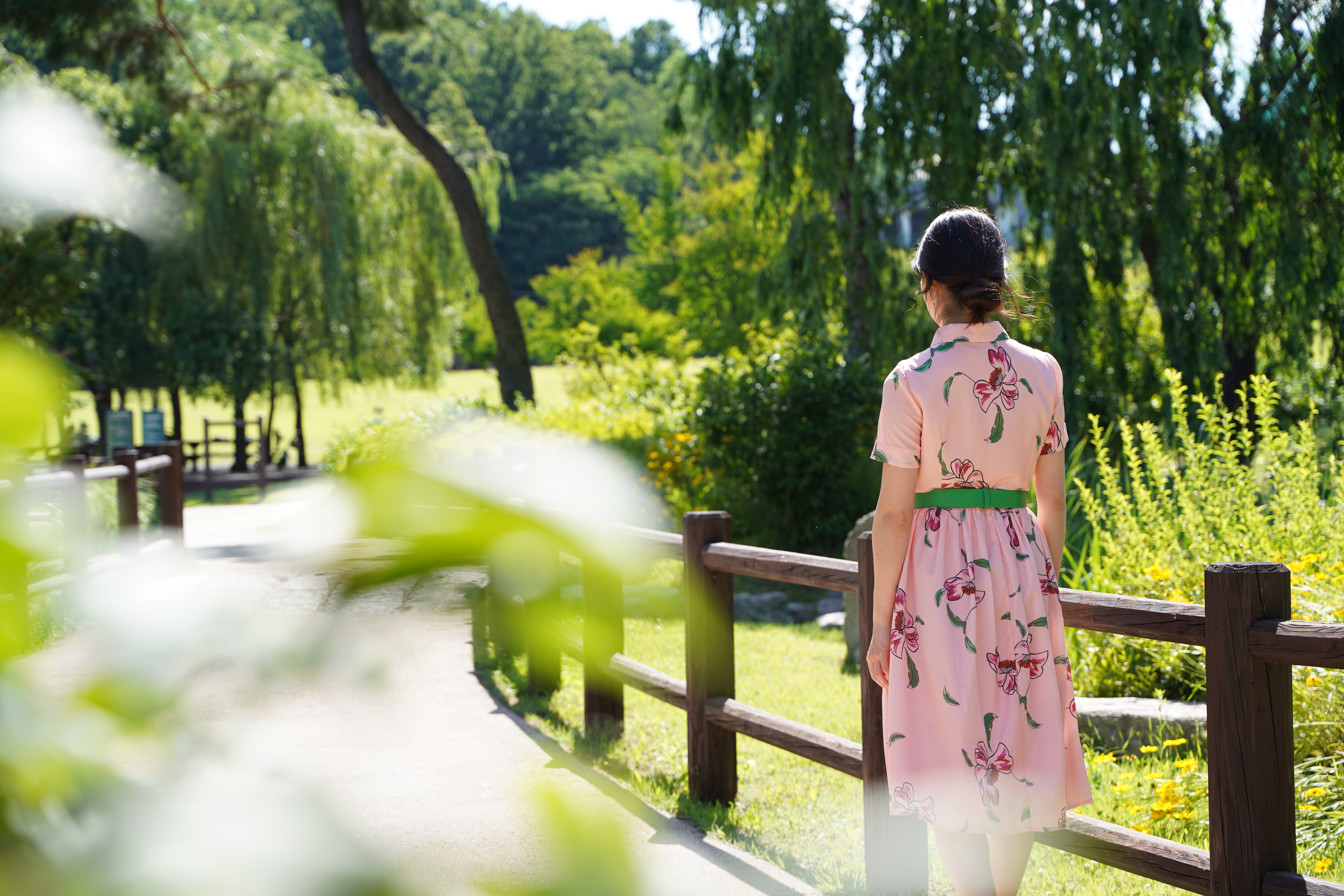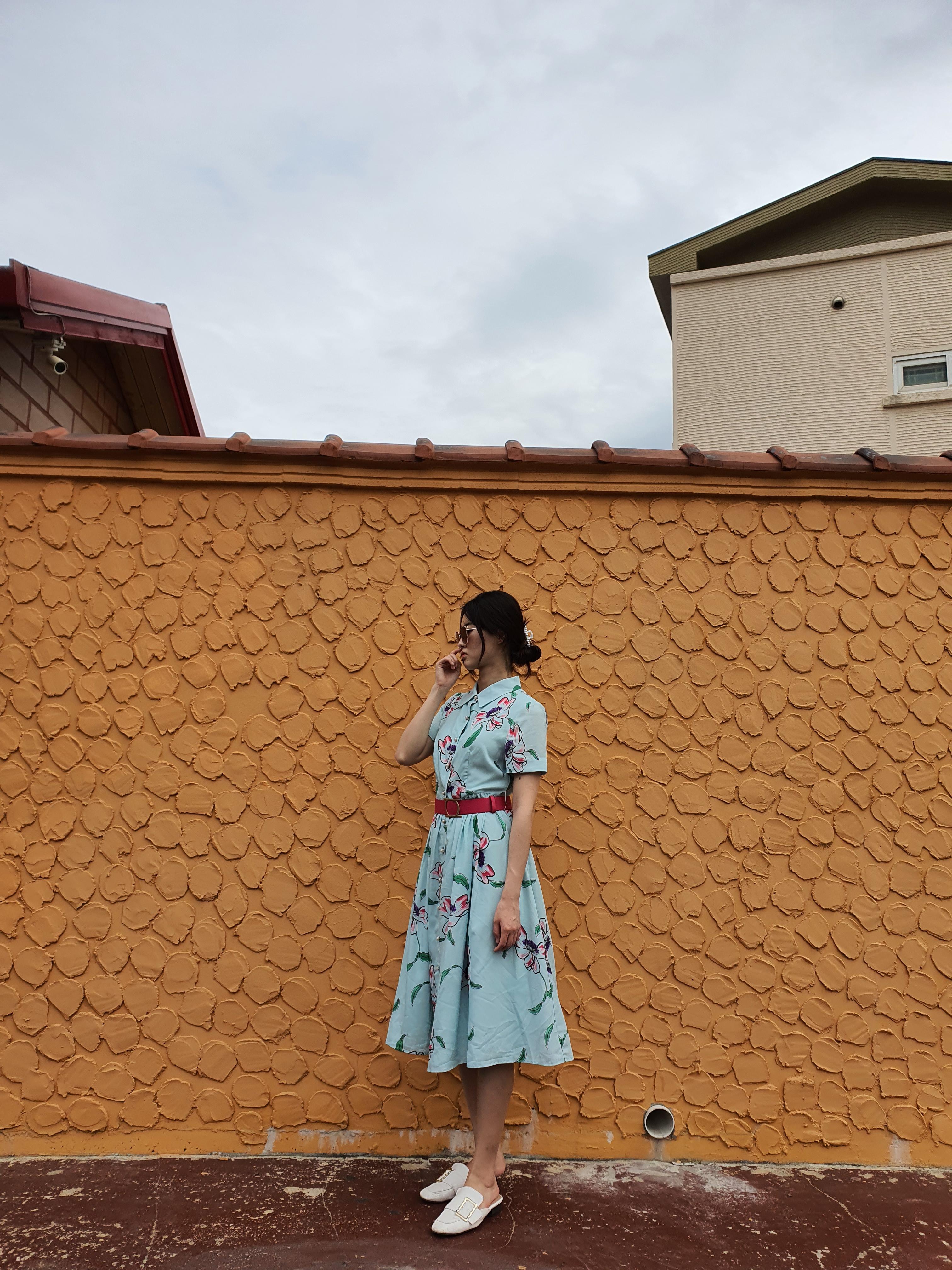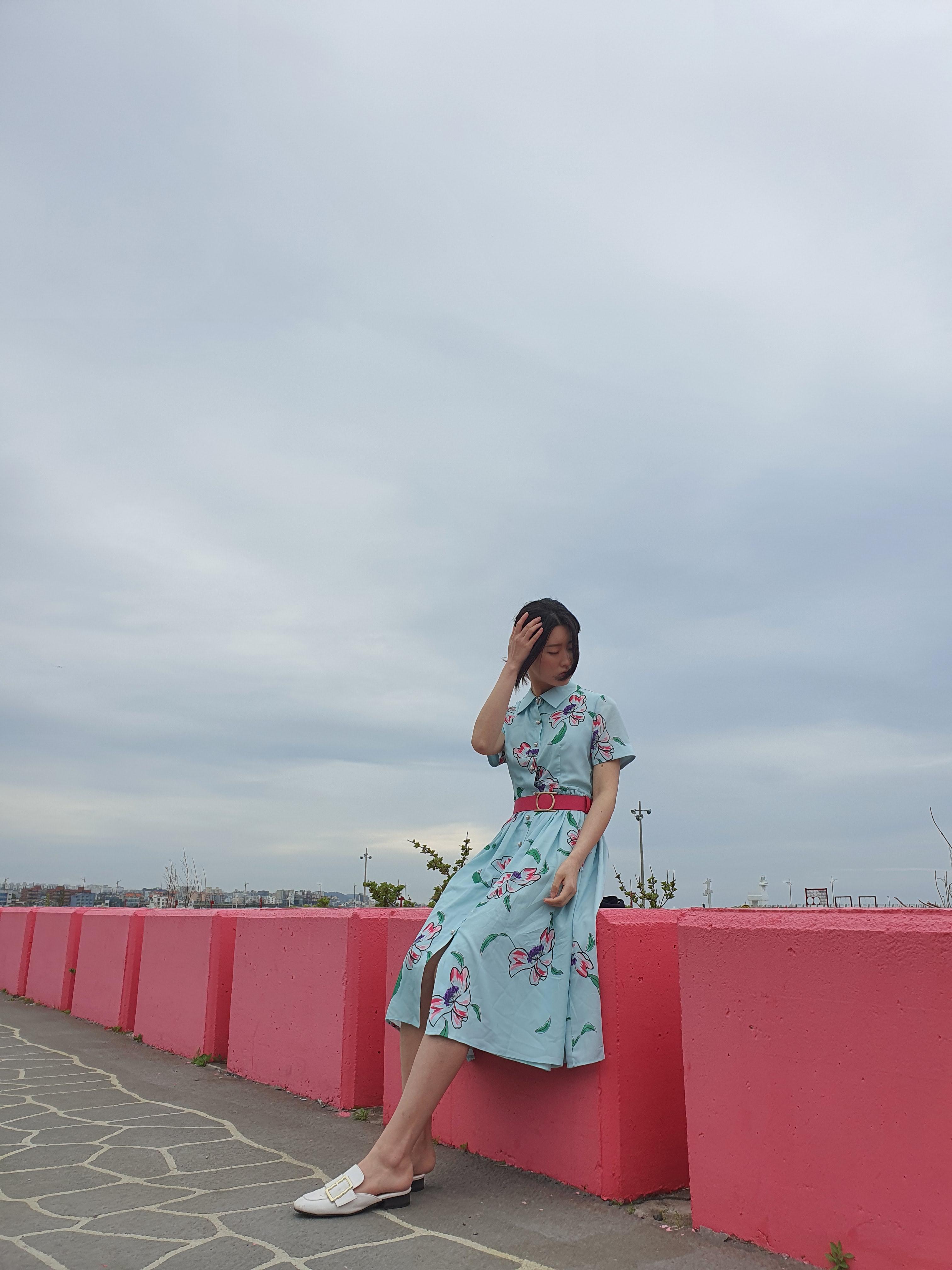 하체를 가리고 싶으시거나, 바람이 많이 부는 곳을 가실 경우 롱 원피스를 많이들 입으시는데요, 대부분 색상이 원톤인데 유니크한 색상이라서 너무 좋은 것 같아요. 빅 플라워 패턴이 들어간 원피스는 요즘에 보기 힘든데 이렇게 입어보니 유니크하고 고급스러워서 자주 입게 됩니다.