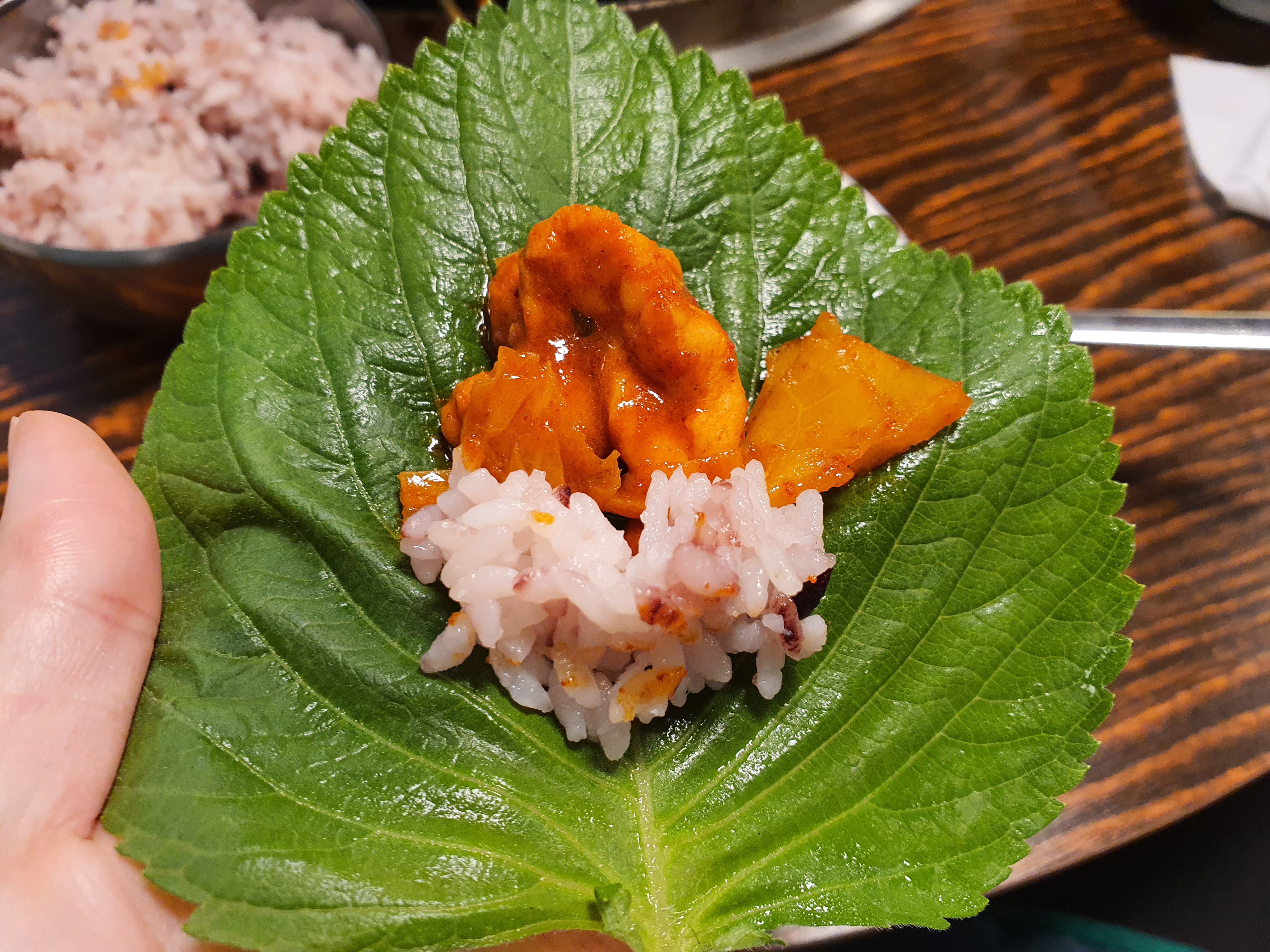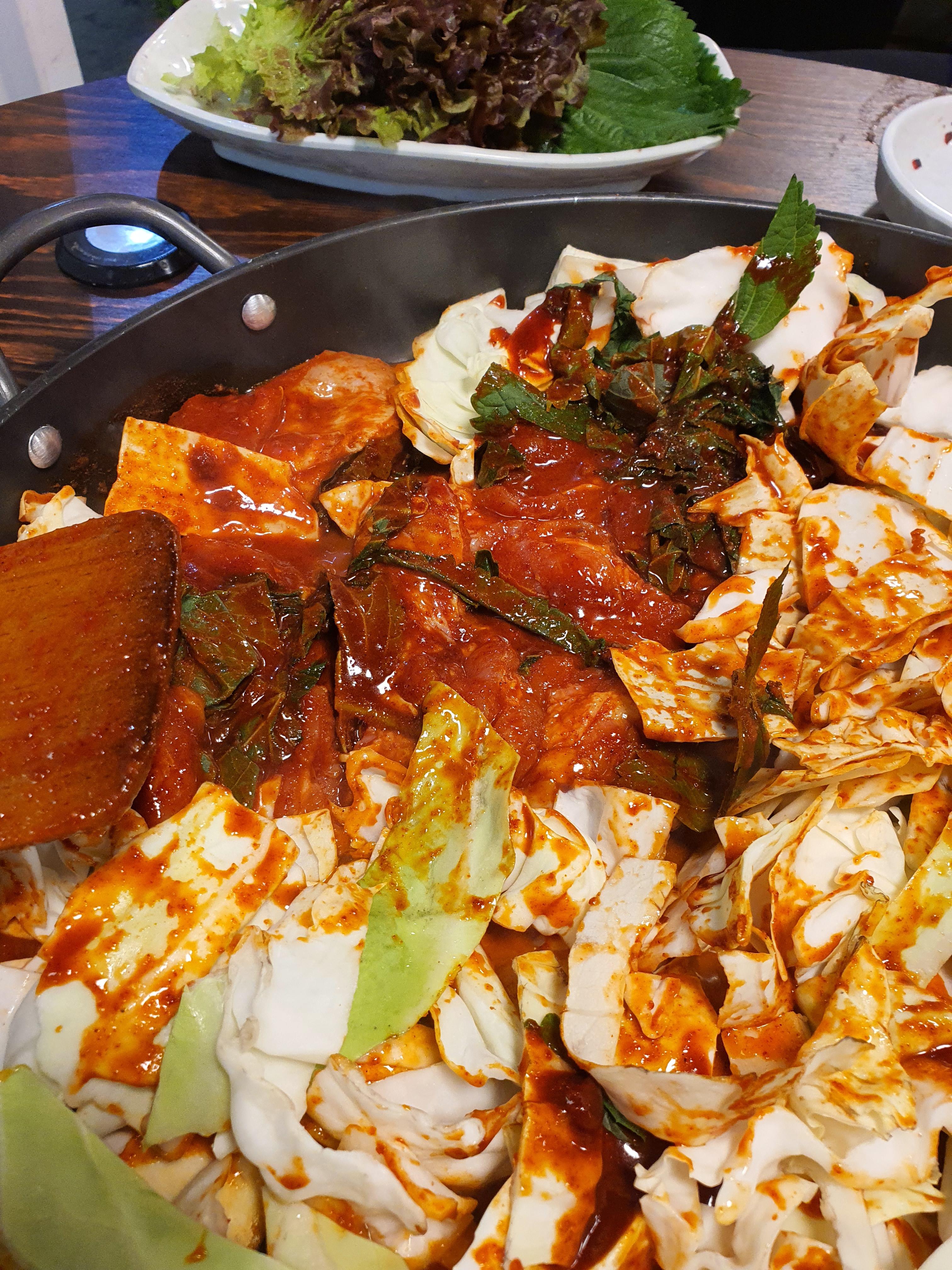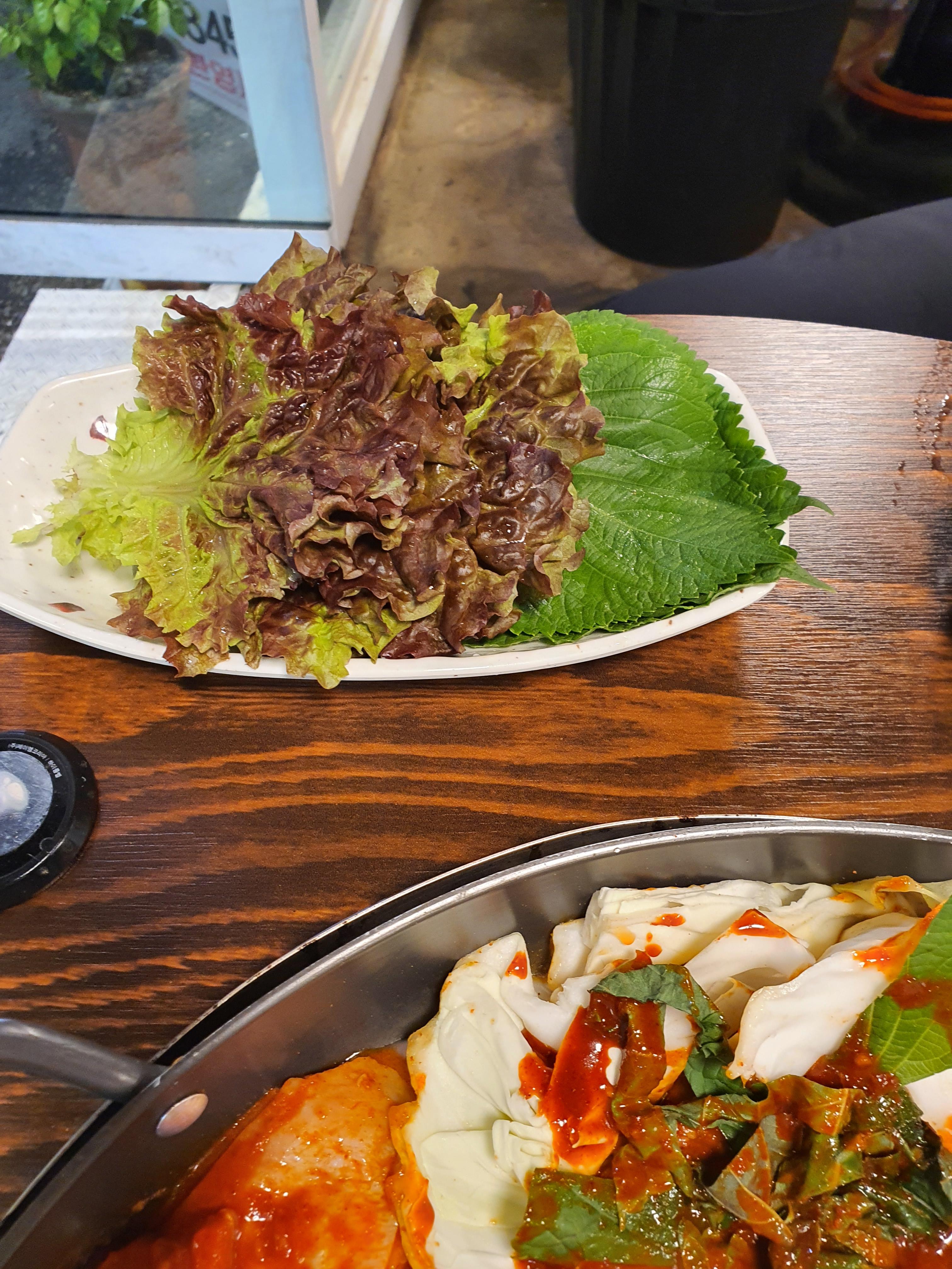 싱싱한 깻잎과 상추를 보세요~ 이미 너무 싱싱해 보이죠? 외대앞역 맛집인 만큼 20년전통외대닭갈비는 재료가 신선해서 아주 마음에 듭니다.
