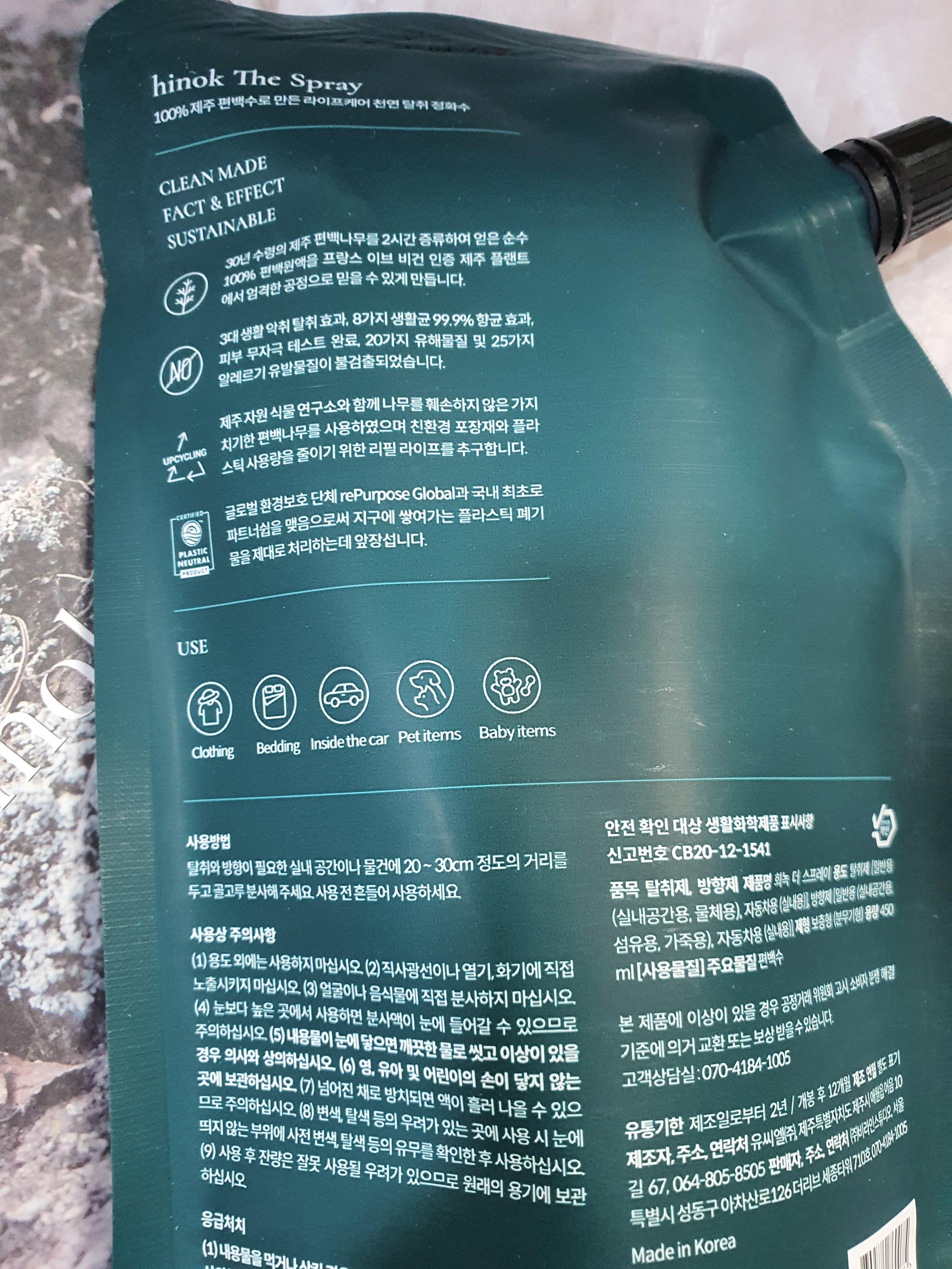 희녹 스프레이안에 내용물을 넣고 칙칙 뿌려주면 되는데, 제주도에 온 것 같은 느낌이 드는!!!