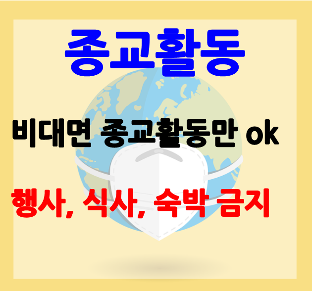 종교활동은 비대면으로만 진행을 해야 하며 행사와 식사 그리고 숙박은 전면 금지됩니다.