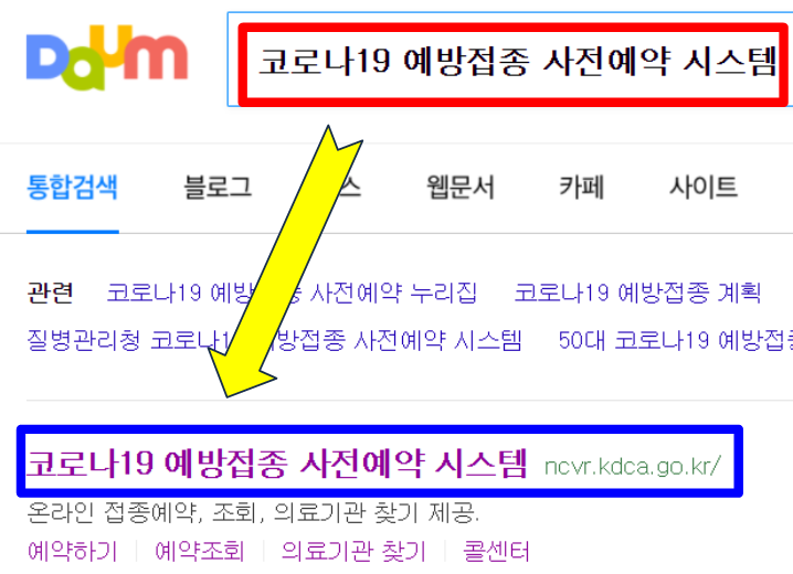 다음에서 코로나19예방접종 사전예약 시스템을 입력해줍니다. 바로 링크를 눌러주시면 되는데요, 아래에 링크를 걸어두었으니 참고하시면 됩니다.