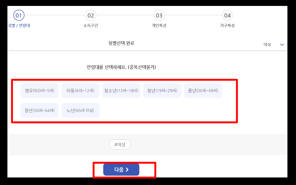 연령대는 본인의 나이에 맞춰서 눌러주시면 됩니다. 그리고 다음을 눌러주세요. 잘 따라오셨나요? 이제 거의 다 했습니다.