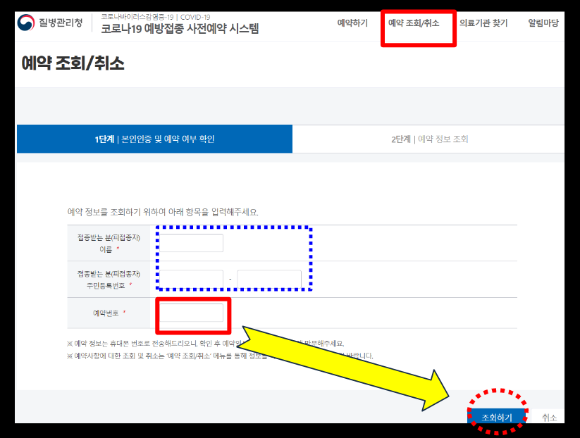 질병관리청 사전예약 시스템으로 예약 조회하기