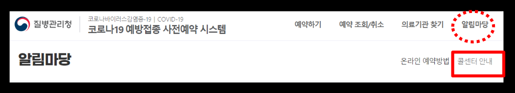 질병관리청 사전예약 시스템 콜센터 바로가기