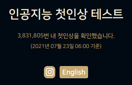 AI가 판단한 내 첫인상 테스트 바로가기를 누르시면 이렇게 화면이 보입니다. 아래로 더 내려가시면, 이렇게 화면이 보입니다.