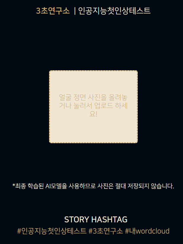 AI가 판단한 내 첫인상 테스트 바로가기를 누르시면 이렇게 화면이 보입니다. 아래로 더 내려가시면, 이렇게 화면이 보입니다.