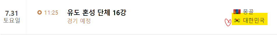 7월 31일 토요일 도쿄 올림픽 일정 중에 가장 기대가 되는 유도 혼성 단체 16강입니다.